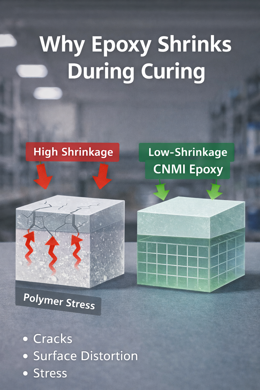 This article explains why epoxy shrinks, how shrinkage affects performance, and how CNMI minimizes dimensional change through formulation and process control.